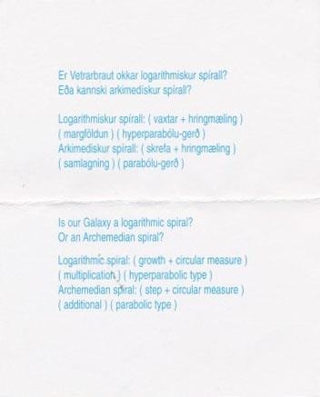 Description: 15x12 cm cardboard with a text written in blue about our Galaxy origins.