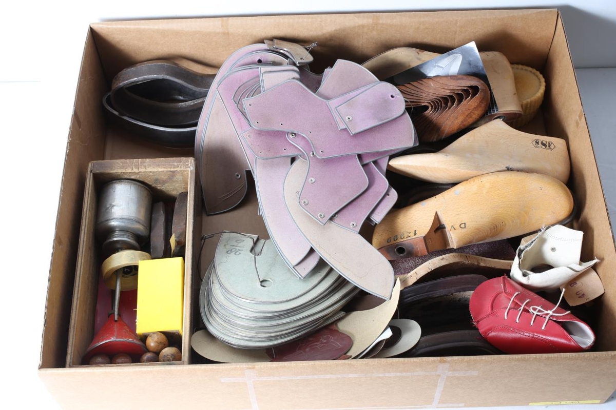 Kassi með allskonar sniðum af skóm, sólar, tveir járnstimplar til að höggva út leðursóla. Járn með alexanderbekk sem er einhverskonar munsturstimpill. Sjö kippur af sniðum, hælkappaleður og fleira smádót. Stimpill úr stáli með tölunni 3 og annar með 1/2. Fjórir stimplar með tölunum 0. 1. 7. og 8. Þetta dót er allt frá skóverksmiðjunni Agilu h/f sem starfrækt var hér á Egilsstöðum og var uppá lofti á Bæjarskrifstofunum að Lyngási 12.