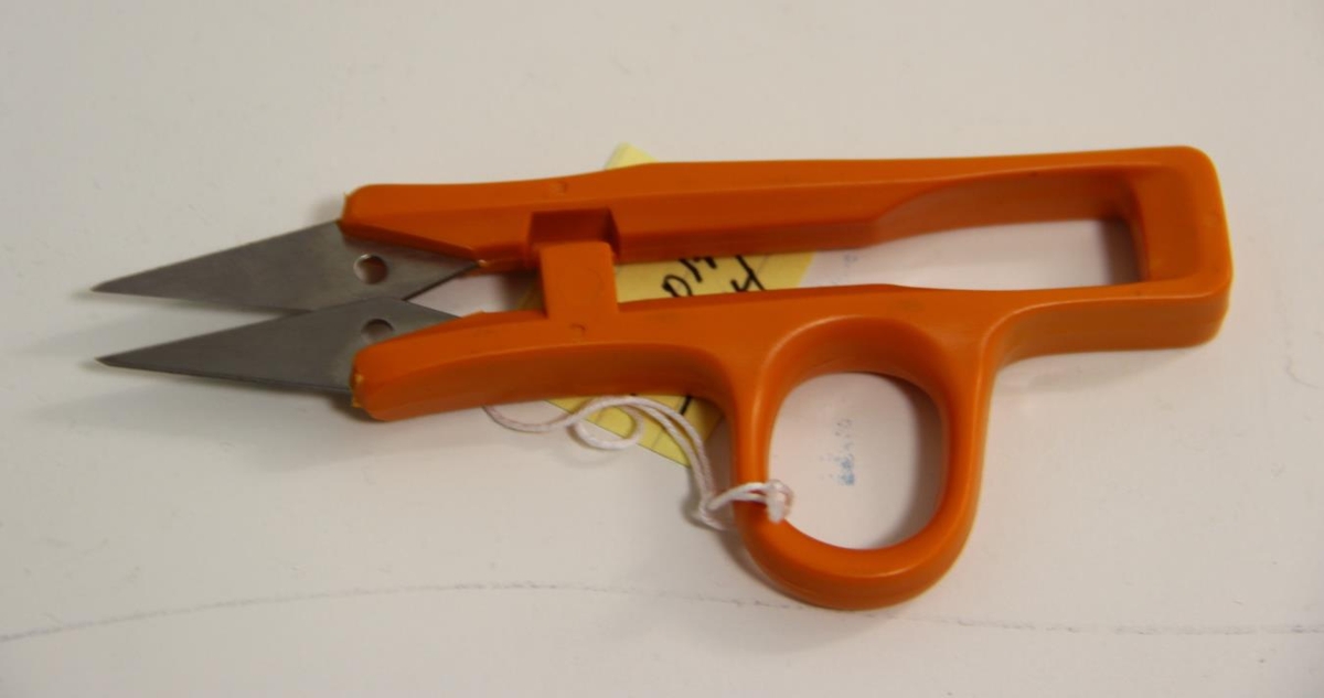 Hluturinn er skæri sem notuð voru í fágunardeild (pillingu) Ullarverksmiðjunnar Gefjunar á Akureyri. Í fágunardeildinni voru efnin grandskoðuð og ef hnútar fundust í vefnaði voru þessi skæri notuð.