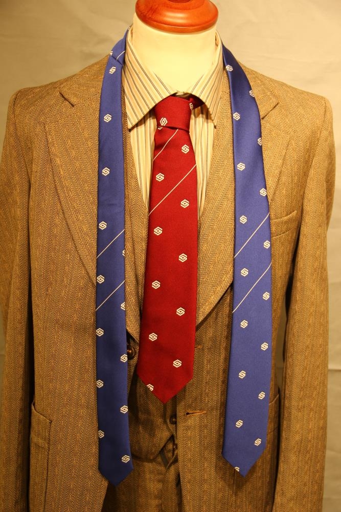 Hálsbindin á mynd 2: Annað bindið er blátt en hitt er rautt. Á báðum er mynd af Sambandsmerkinu.