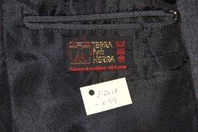 Dökkgrá jakkaföt. Áletrun á ísaumuðum miða: „Terra fyrir herra“ - Fataverksmiðjan Gefjun.