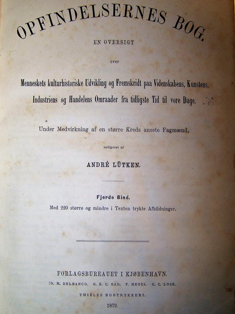 Bók úr búi Benedikts Kristjánssonar á Grenjaðarstað. Komu 7 saman úr sömu ritröð. Opfindelsernes bog, Forlagsburautet i Kjobenhavn. Sonur Benedikts Kristjánssonar, Kristján Benediktsson gullsmiður gaf Gunnari Þór bækurnar. Bindi 4.
