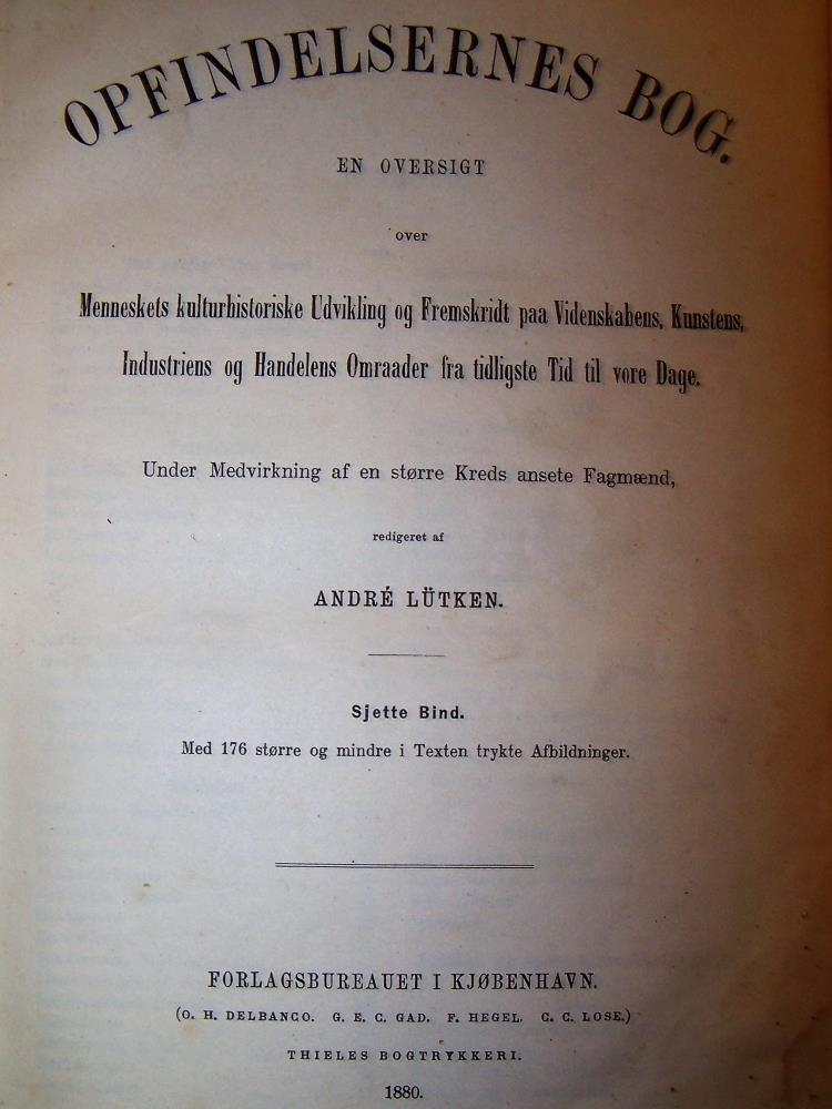 Bók úr búi Benedikts Kristjánssonar á Grenjaðarstað. Komu 7 saman úr sömu ritröð. Opfindelsernes bog, Forlagsburautet i Kjobenhavn. Sonur Benedikts Kristjánssonar, Kristján Benediktsson gullsmiður gaf Gunnari Þór bækurnar. Sjötta bindi.