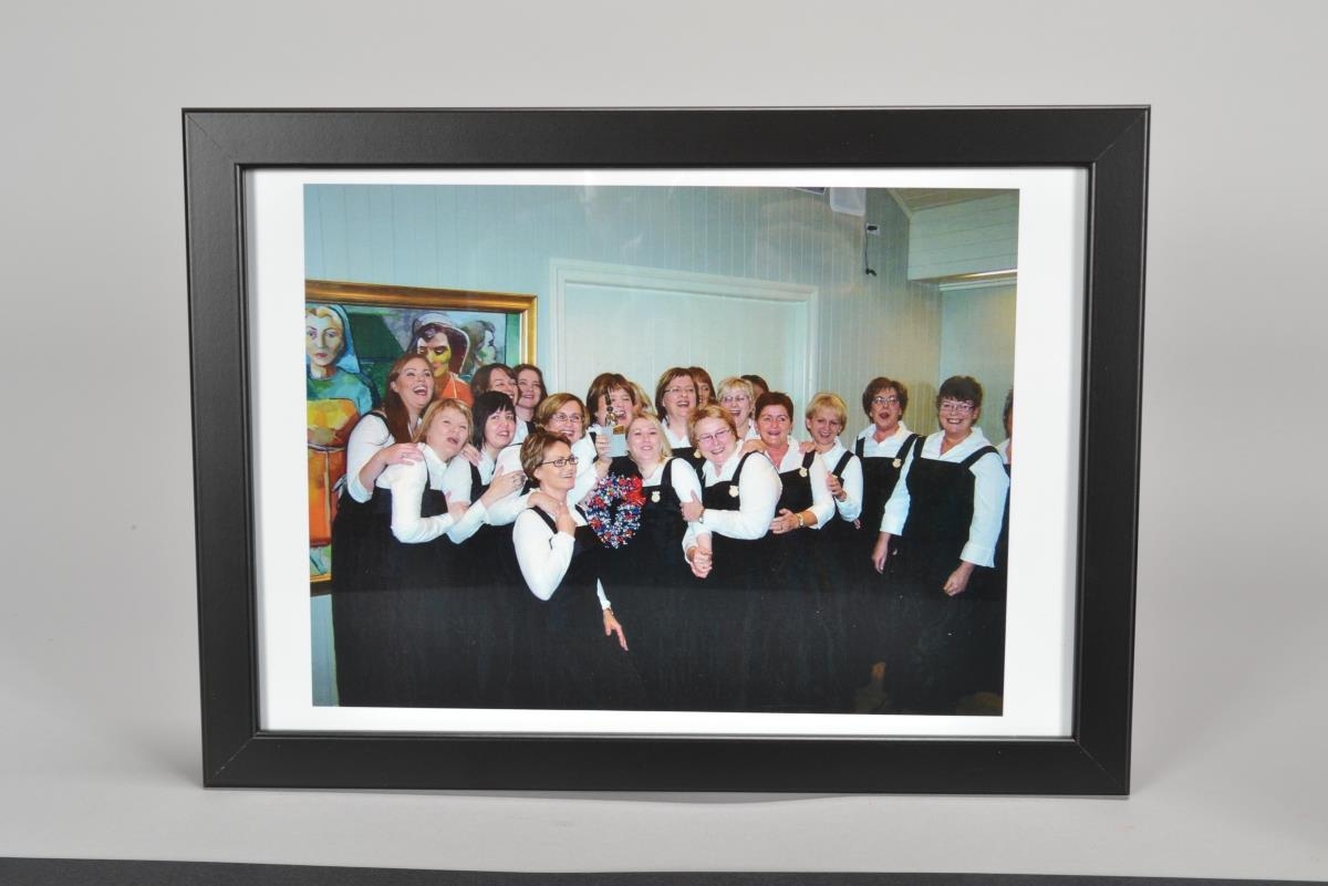 Innrömmuð litljósmynd af Kvennakór Suðurnesja í Duushús við afhendingu „Súlunnar“, menningarverðluna Reykjanesbæjar árið 2008