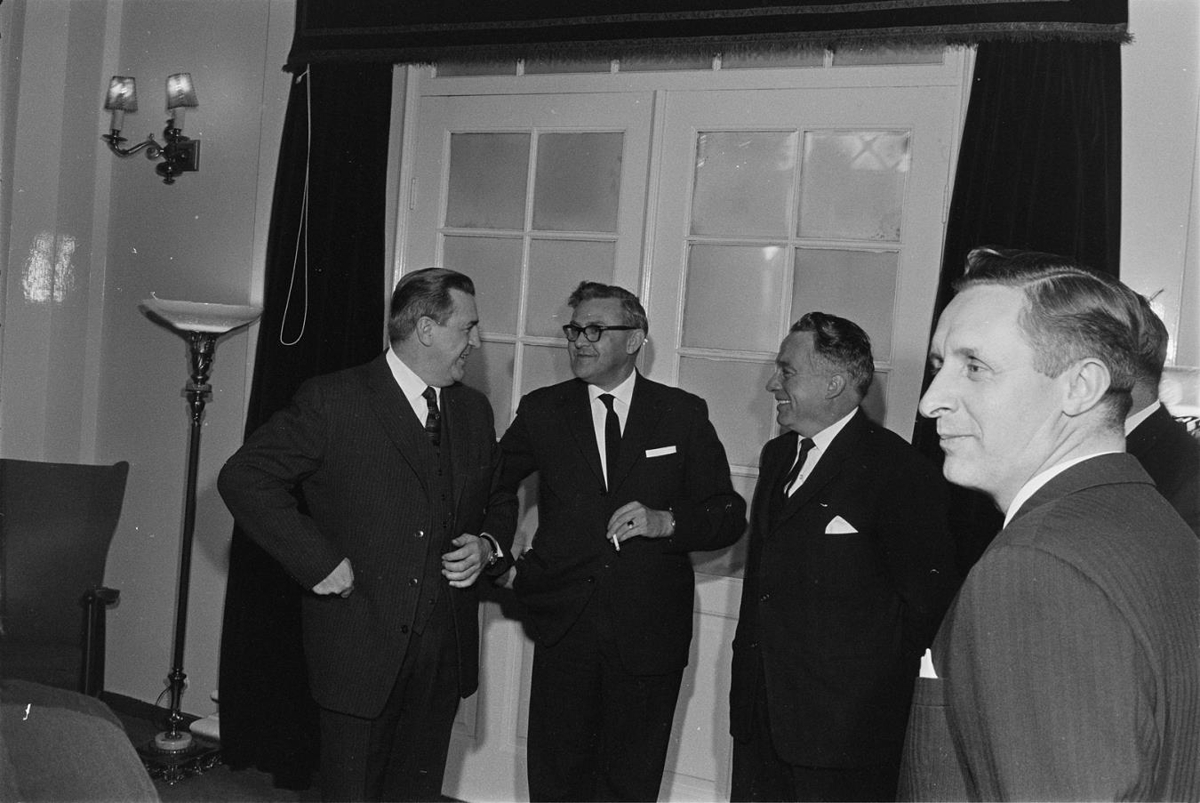 „Jóhann Hafstein, Matthías Bjarnason, óþekktur, Magnús Jónsson frá Mel.“ (ILB 2018)