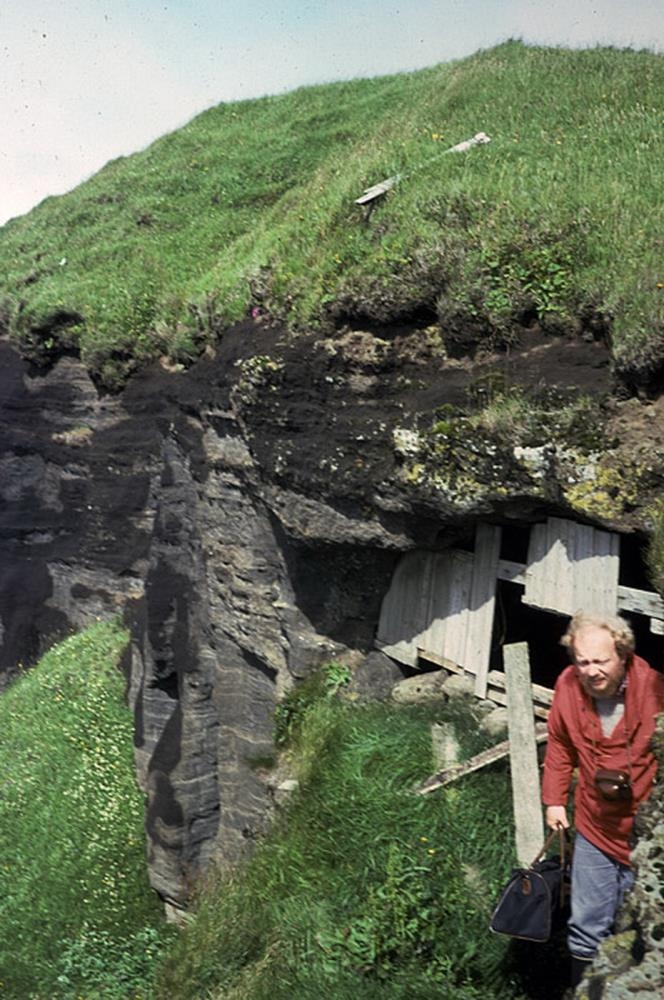23. Hellismunni, sem spýtum hefur verið slegið fyrir. Maður stendur þar hjá. Sveinbjörn Rafnsson.