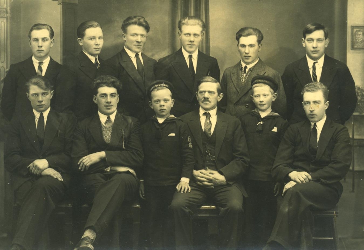 efsta röð annar frá hægri: Sigurjón Sigurðsson fisksali frá Brekkuhúsi fæddist 6. mars 1890 í Hallgeirsey í Landeyjum og lést 8. júní 1959. Sigurjón fór til Vestmannaeyja 2 ára gamall með foreldrum sínum, Sigurði Sveinbjörnssyni og Sigurbjörgu Sigurðardóttur. Hann ólst upp á Fögruvöllum og síðar í Brekkuhúsi.