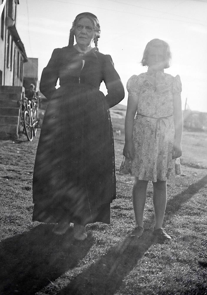 Halla Einarsdóttir, Þykkvabæ í Landbroti og Inga Þórarinsdóttir á hlaðinu í Hólmi í Landbroti.