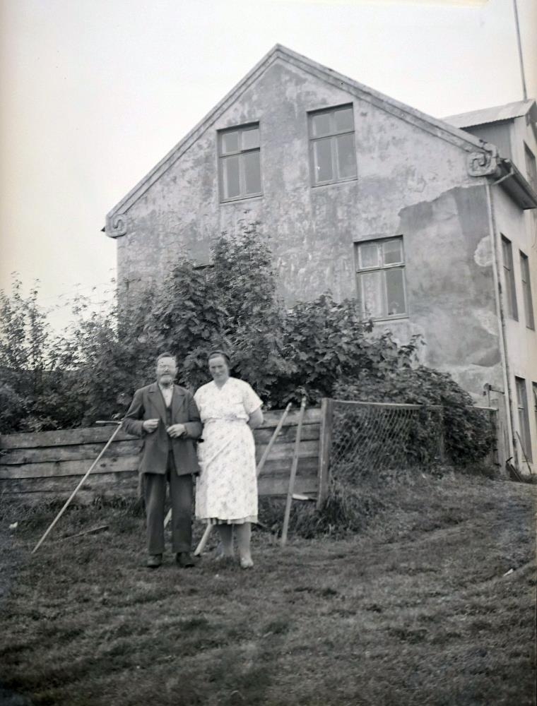 Karlmaður, líklega Runólfur Bjarnason og kvenmaður, gæti verið Valgerður tengdadóttir hans Helgadóttir.
