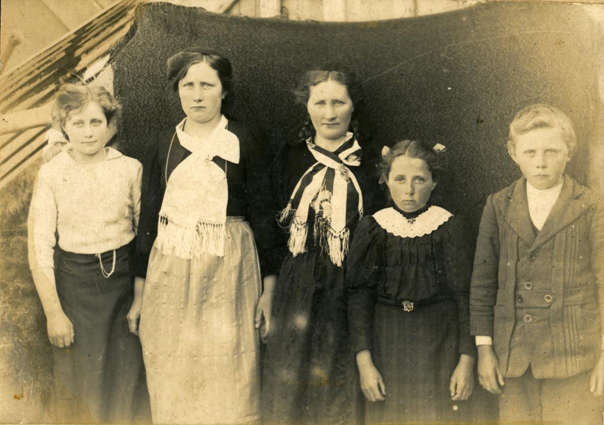 Á myndinni er Guðrún Markúsdóttir (1874-1965) ásamt börnum sínum og Runólfs Bjarnasonar, sem drukknaði í Hvítá hjá Iðu, eftir slys við dragferjuna þar, þann 18. september. Með Guðrúnu á myndinni eru börn hennar og Runólfs: frá vinstri Sigríður (1899-1987), Þorgerður (1895-1966), Guðný (1902-1953) og Runólfur (1904-1933). Guðrún bjó áfram á Iðu eftir lát bóndasíns, til vors 1913, en flutti þá í átthaga sína í Meðallandi.