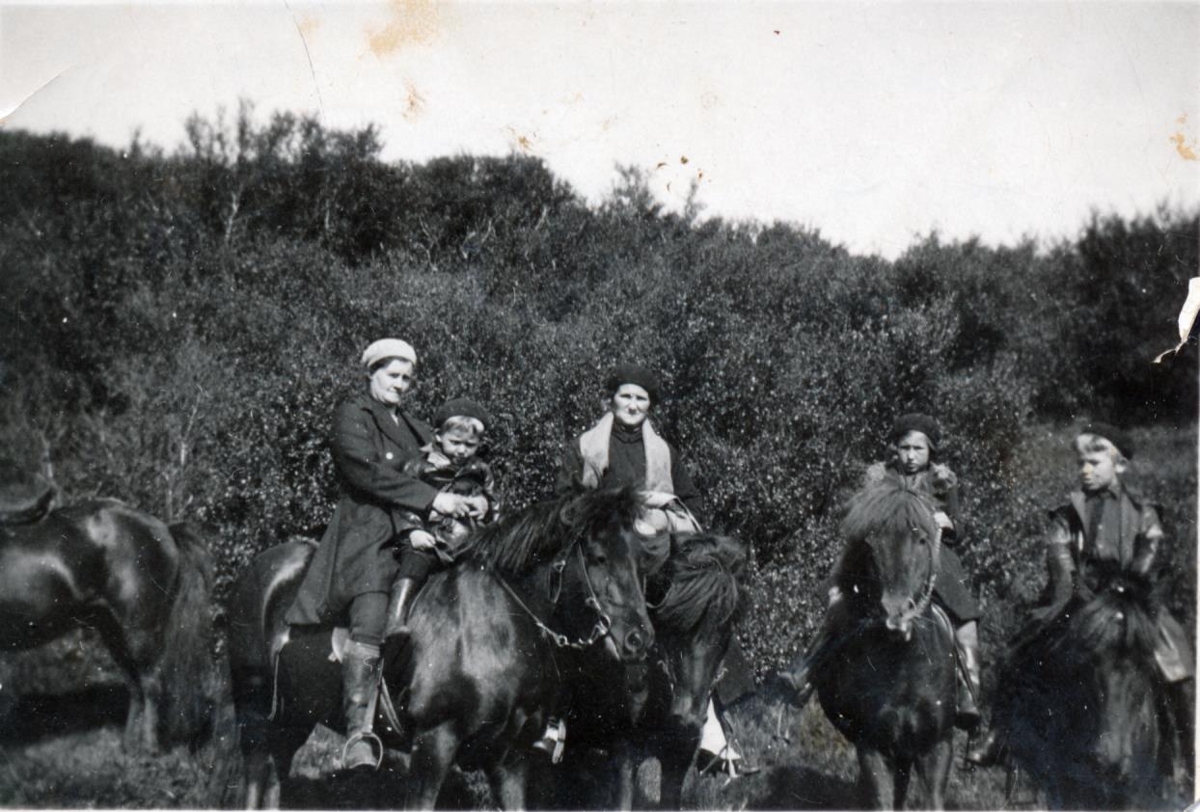 Ljósmynd úr safni Þorkels Sigurðssonar (1923-2015), trésmiðar í Reykjavík. Hann var kvæntur Þorbjörgu Guðmundsdóttur. Þorkell var sonur Sigurðar Guðmundssonar (1888-1982) og Kristínar Þorkelsdóttur (1894-1981), bænda að Kolsstöðum í Hvítársíðu 1918-1960. Kristín var áður gift Bergi Sæmundssyni frá Heiði á Langanesi en hamm dó eftir stutta sambúð. Þau áttu dótturina Oddnýju Bergsdóttur (1915-2004). Kristín og Sigurður áttu fimm börn: Berg (1919-1992) bifreiðarstjóra, Ragnheiði (1921-2014), Þorkel (1923-2015) trésmið í Reykjavík, Guðmund (1931-1982) bóndi að Kolsstöðum, Sigurð (1933-2017) hestahirði og tamningarmann og Ásgeir (1936-) pípulagningarmann í Reykjavík.