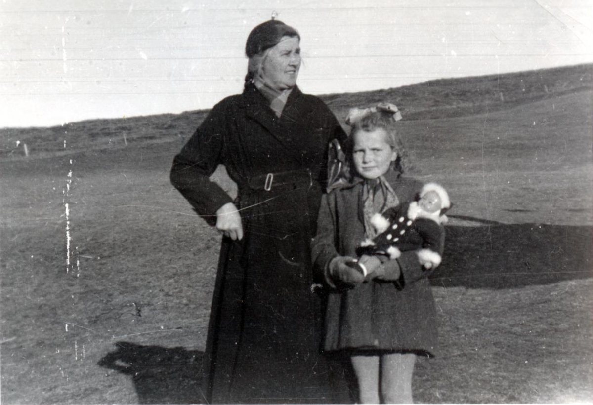 Ljósmynd úr safni Þorkels Sigurðssonar (1923-2015), trésmiðar í Reykjavík. Hann var kvæntur Þorbjörgu Guðmundsdóttur. Þorkell var sonur Sigurðar Guðmundssonar (1888-1982) og Kristínar Þorkelsdóttur (1894-1981), bænda að Kolsstöðum í Hvítársíðu 1918-1960. Kristín var áður gift Bergi Sæmundssyni frá Heiði á Langanesi en hamm dó eftir stutta sambúð. Þau áttu dótturina Oddnýju Bergsdóttur (1915-2004). Kristín og Sigurður áttu fimm börn: Berg (1919-1992) bifreiðarstjóra, Ragnheiði (1921-2014), Þorkel (1923-2015) trésmið í Reykjavík, Guðmund (1931-1982) bóndi að Kolsstöðum, Sigurð (1933-2017) hestahirði og tamningarmann og Ásgeir (1936-) pípulagningarmann í Reykjavík.