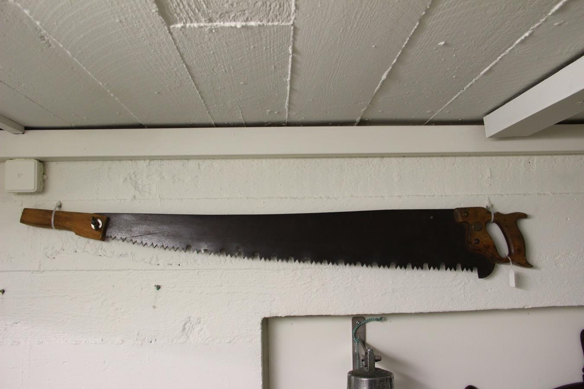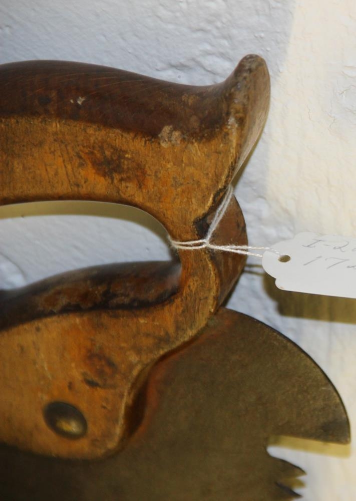 Sögin er með tréhandföngum á báðum endum. Hún er úr safni Félags byggingamanna Eyjafirði. Fyrri eigandi var Sigurður Hannesson trésmiður.