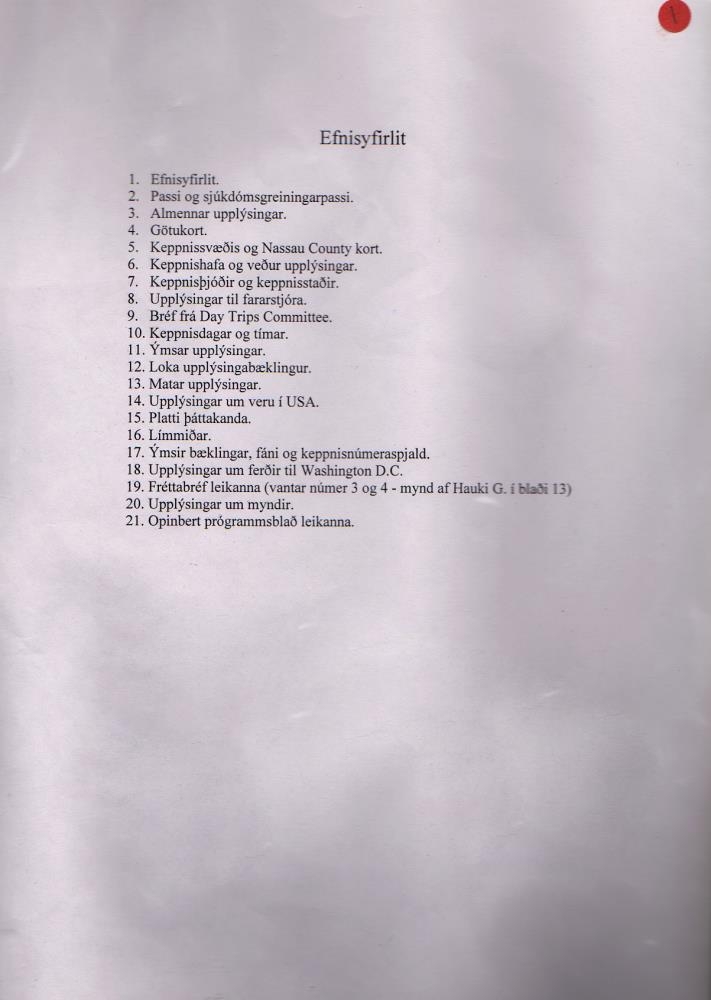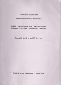 Mappa hvít á lit þar sem allar nauðsynlegar upplýsingar varðandi Ólympíumót hreyfihamlaða sem haldnir voru í Nassau County, New York, Bandaríkjunum dagana 16. - 30.júní 1984. Í möppunni sem er með efnisyfirliti eru upplýsingar fyrir þátttakendur ásamt ýmsum upplýsingum upplýsingum um þátttöku gefanda á Ólympíuleikunum 1984 s.s. aðgangspassi, keppnisskráning, myndefni o.fl. Mappan er útbúin af gefanda þann 21.ágúst 2000.