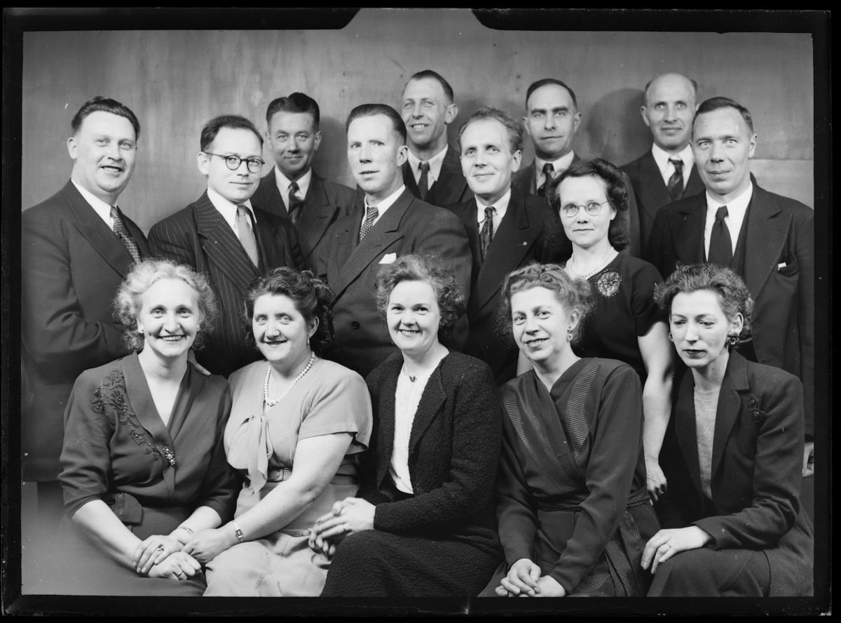Aftari röð frá vinstri: Friðrik, Bjarni, Guðmar, Sigurðrur Ág., Einar G., Jón M. Guðjónsson (1905-1994), Óskar Þ., Guðrún Theodóra Benediktsdóttir Reyndl (1903-1987), Birkir J. og Þórður L.