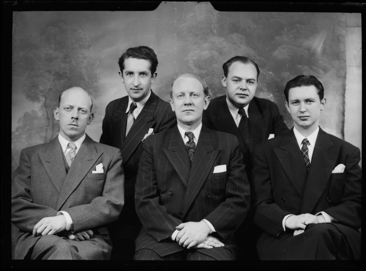 Efri röð frá vinstri: Þórir Hall, Hjálmar Blöndal. Neðri röð frá vinstri: óþekktur maður, Hróbjartur Bjarnason, Valgarð Briem.