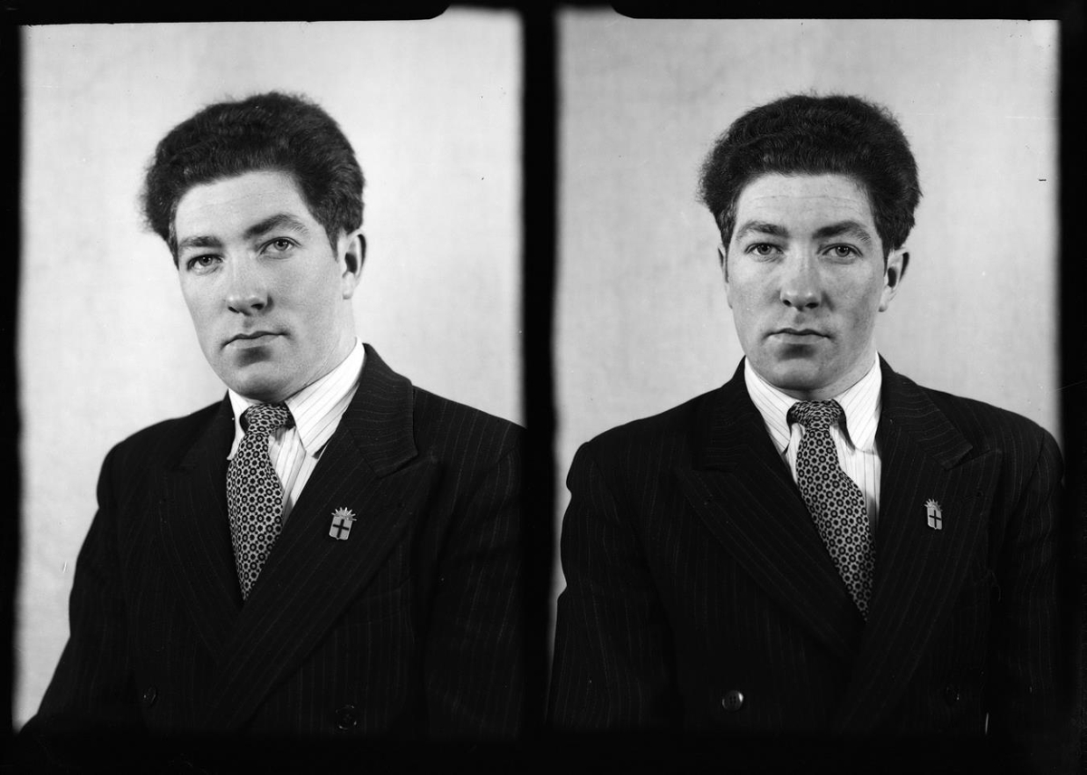 „Guðmundur Óskarsson frá (Sveinungs)eyri Kollafirði A-Barðastrandasýslu fæddur 1926. Líklegast orðinn tvítugur eða meira og því er myndin tekin 1946 eða síðar.“ (ÞG 2020)