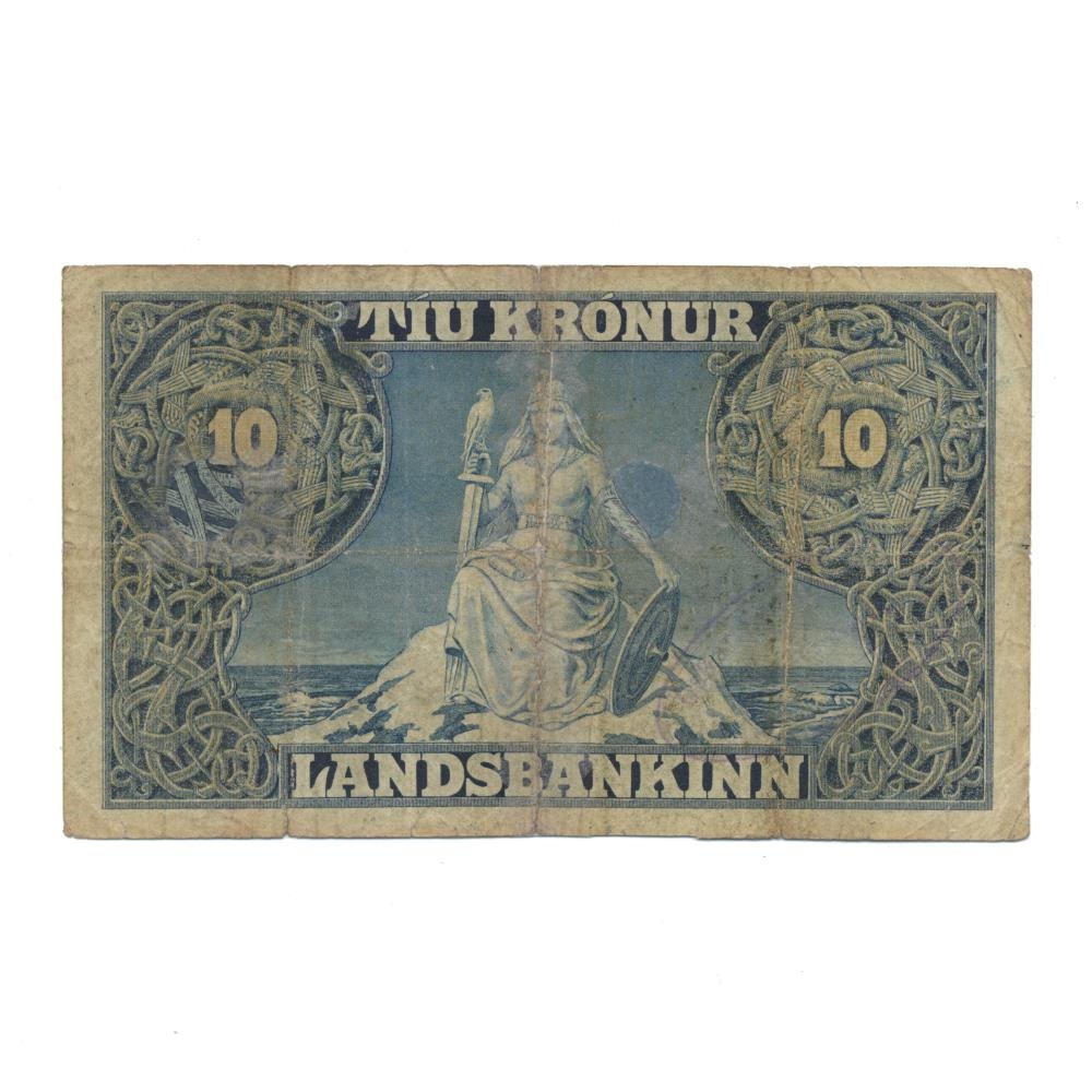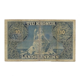 10 Krónu ógildur ( gataður ) seðill úr annari seðlaröð landsjóðs gefinn út samkvæmt lögum nr. 14 / 18. sept. 1885 um stofnun landsbanka og lögum nr. 2 / 12. jan. 1900 um breyting á lögum um stofnun landsbanka 18. sept.1885 [landsstjórninni heimilað að gefa út seðla fyrir allt að fjórðungi milljónar í viðbót við það sem áður var ákveðið].