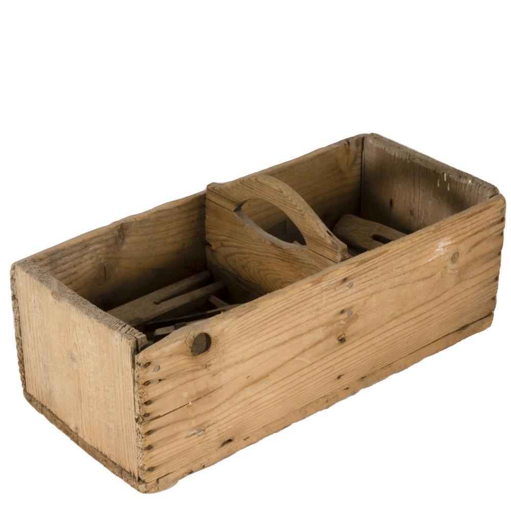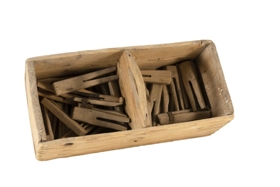 Þvottaklemmur og kassi undir þær. Kemur úr dánarbúi Hendiks Steinssonar