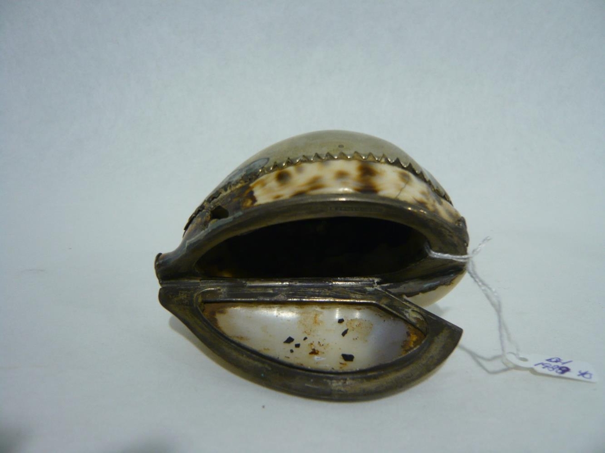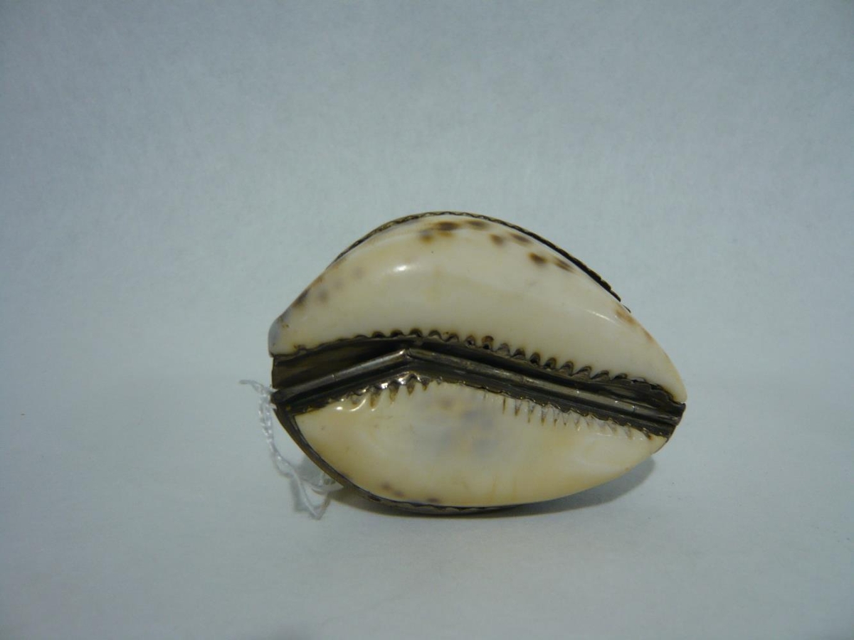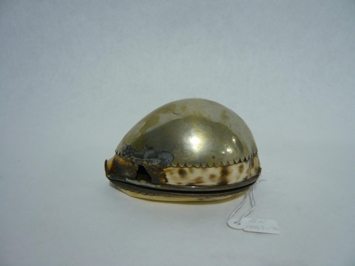 Tóbaksbaukur þessi er búin til úr kuðungi og silfri. Það er lítið af náttúrulegu yfirborði kuðungsins sem sést því þar er hann klæddur nýsilfri. Þessi kuðungstegund er aðeins í heitum höfum, t.d. nálægt miðbaug í Kyrrahafinu. Hann nefnist á vísindamáli CIPRIA TIGRIS en ekkert íslenskt heiti er til á honum. Neðan á honum eru í stað munns, komnar hjarir og skreyting úr nýsilfri. Þetta er ílöng kúpa, 8 cm á lengd, mesta breidd um 5,7 cm og hann er um 5 cm hár.