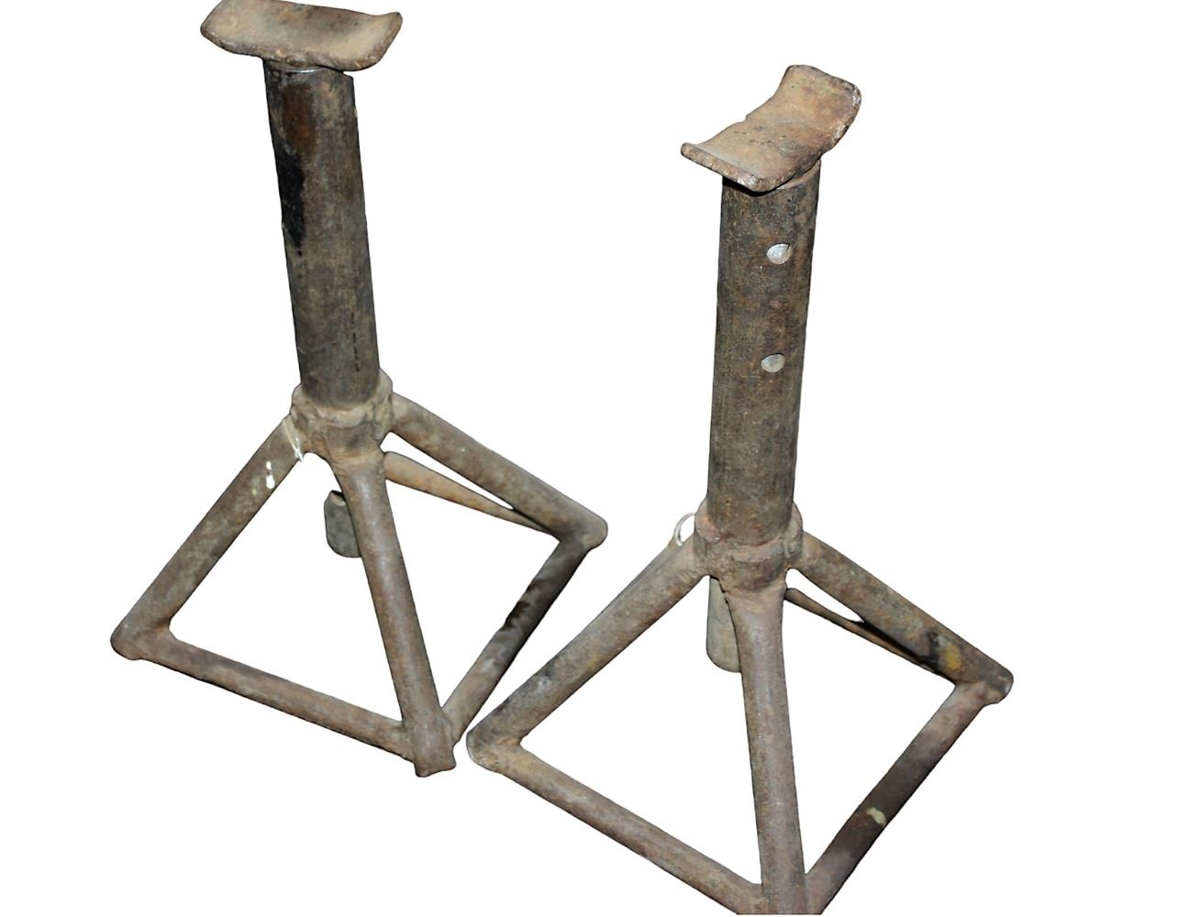 Búkkar tvö stk. úr járni til að setja undir bíla þegar var verið að gera við.