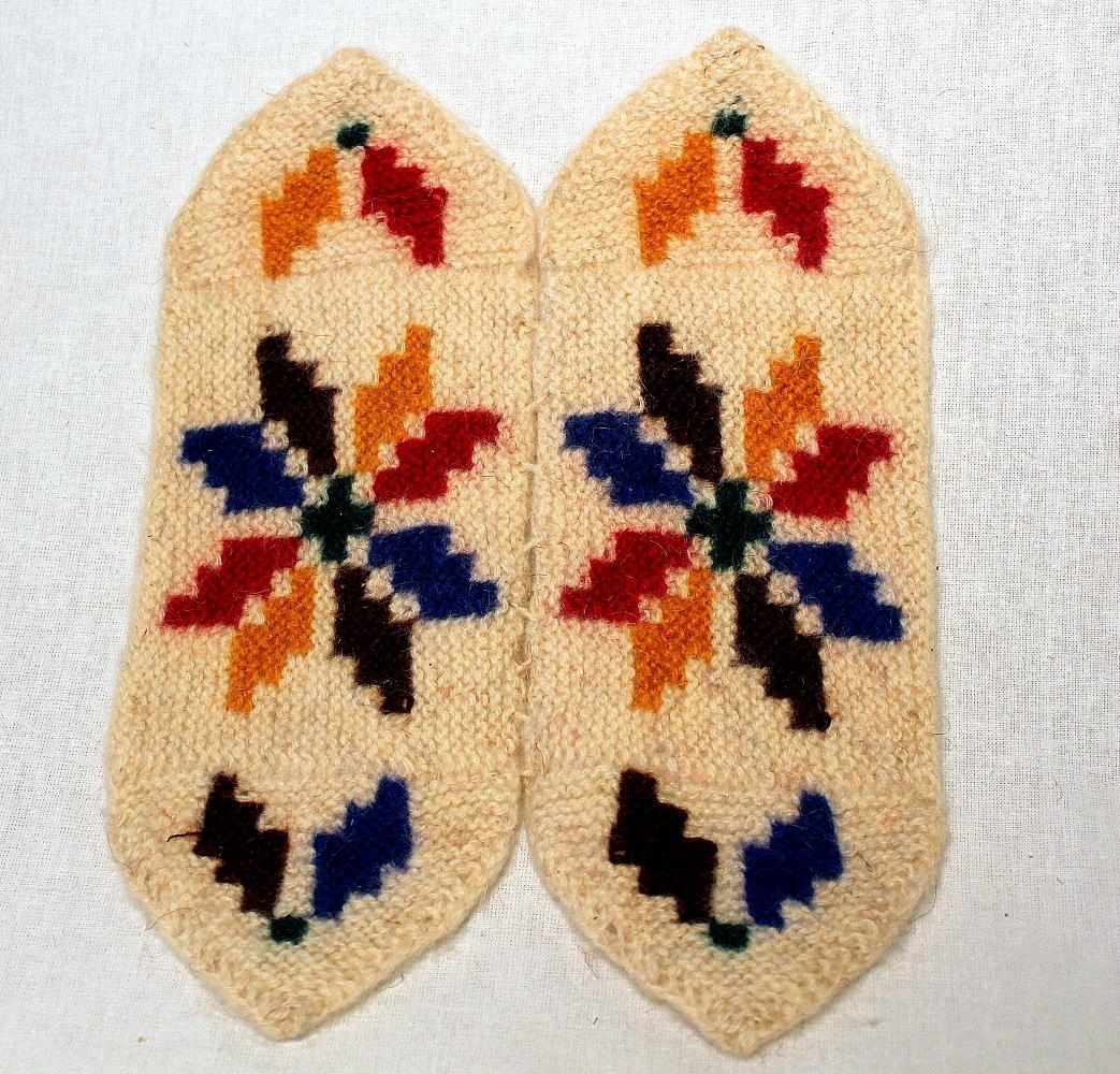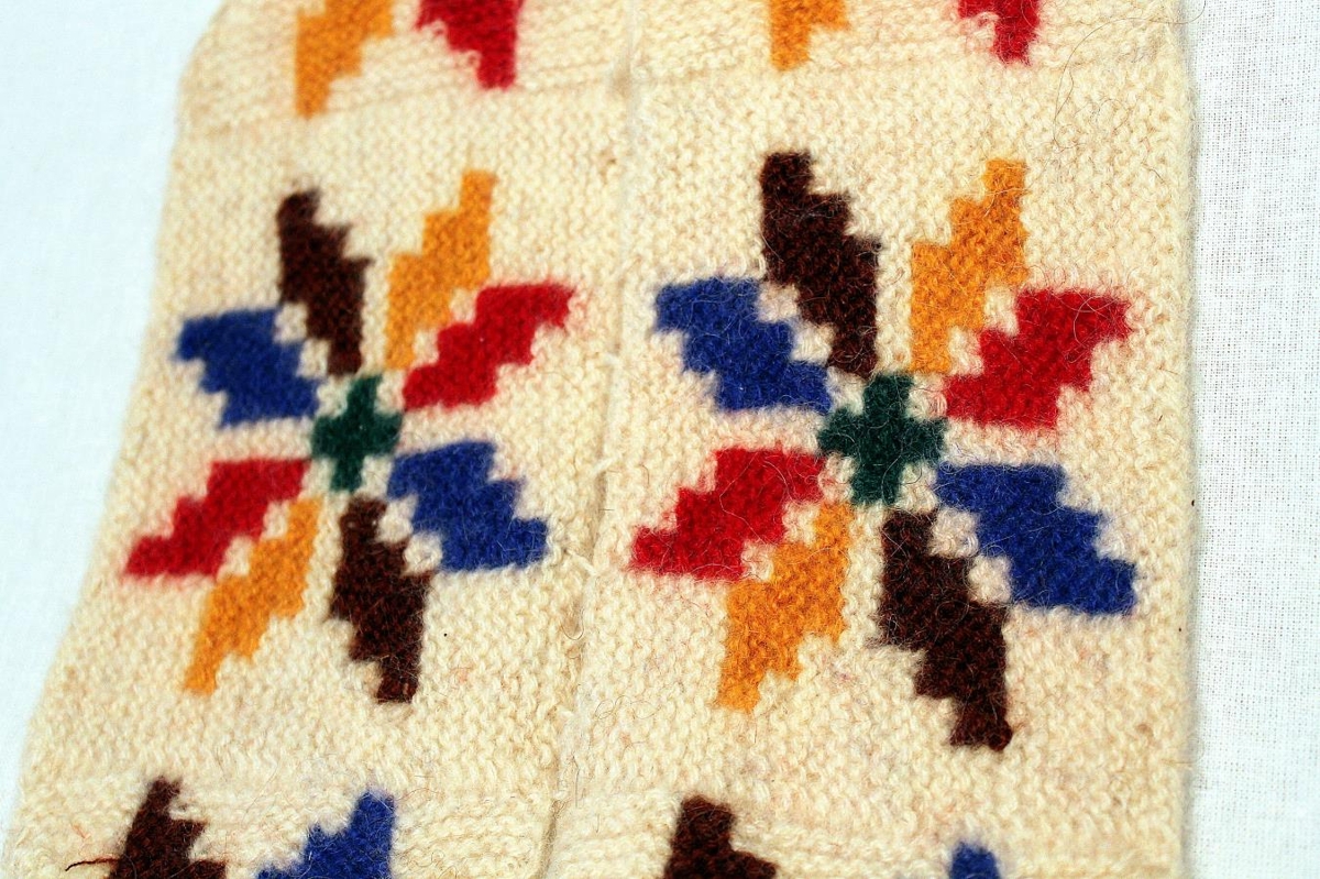 Íleppar prjónaðir af Helgu Sigurðardóttur (1908 - 1982). Helga var dóttir Sigurðar Bjarnasonar bónda í Hraunsási og fyrri konu hans Helgu Jónsdóttur frá Stóra-Ási, en móðir hennar lést af barnsburðinum er Helga fæddist.
