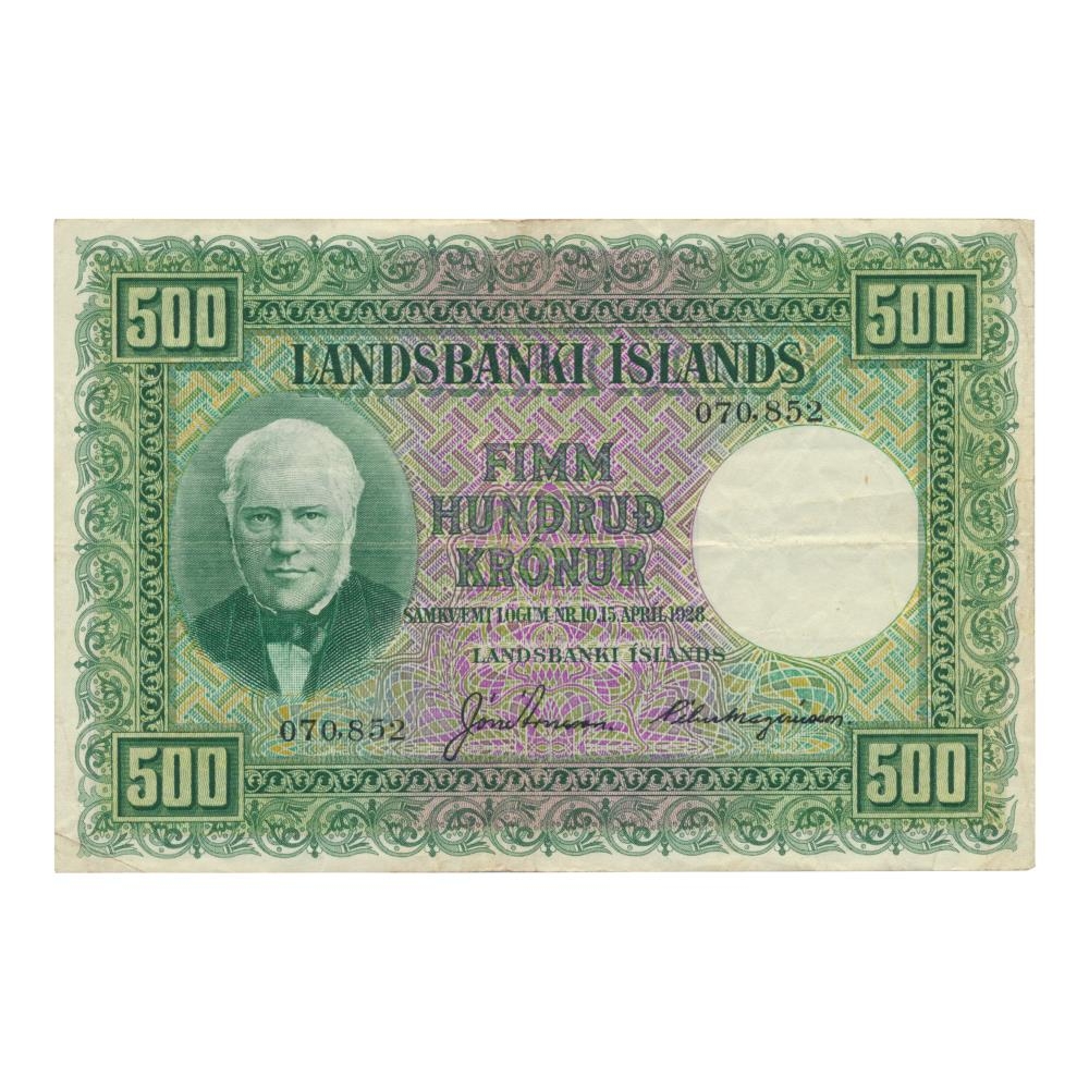 500 krónu seðill úr annari seðlaröð Landsbanka Íslands.