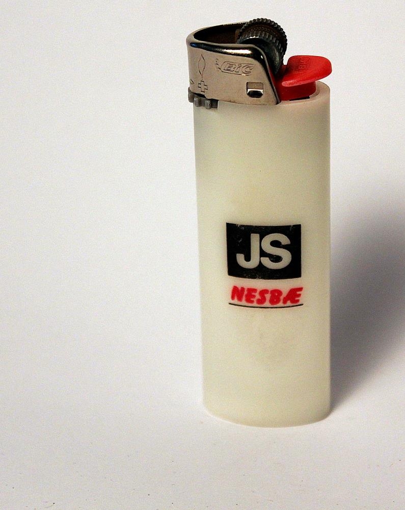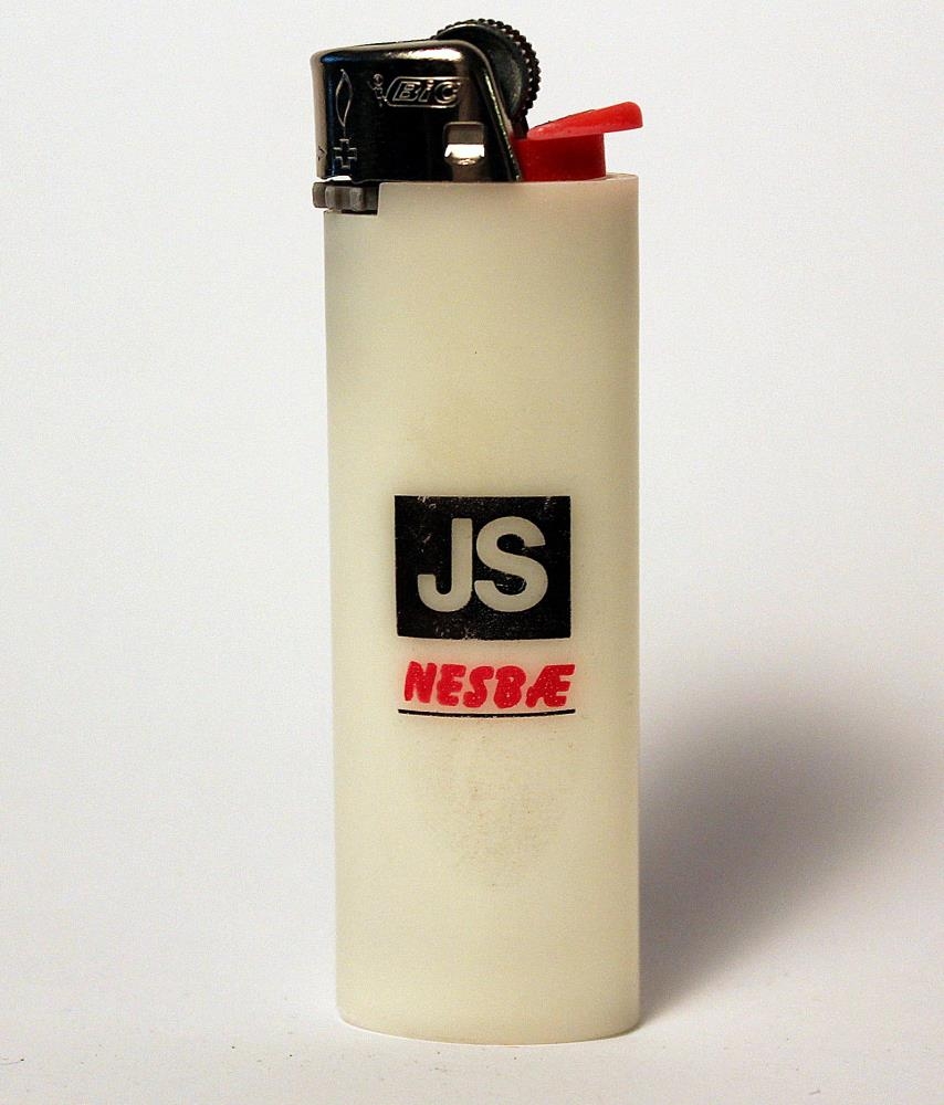 Tveir kveikjarar, merktir “J.S. Nesbæ”. Jón og Stefán Haraldssynir ráku verslunina JS Nesbæ í mörg ár.