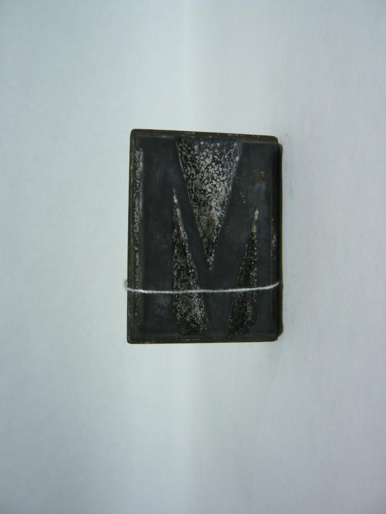 Stimpill með stafnum M. Stimplarnir eru frá Hafnarfirðing og voru notaðir til að stimpla síldar og skreiðartunnur.