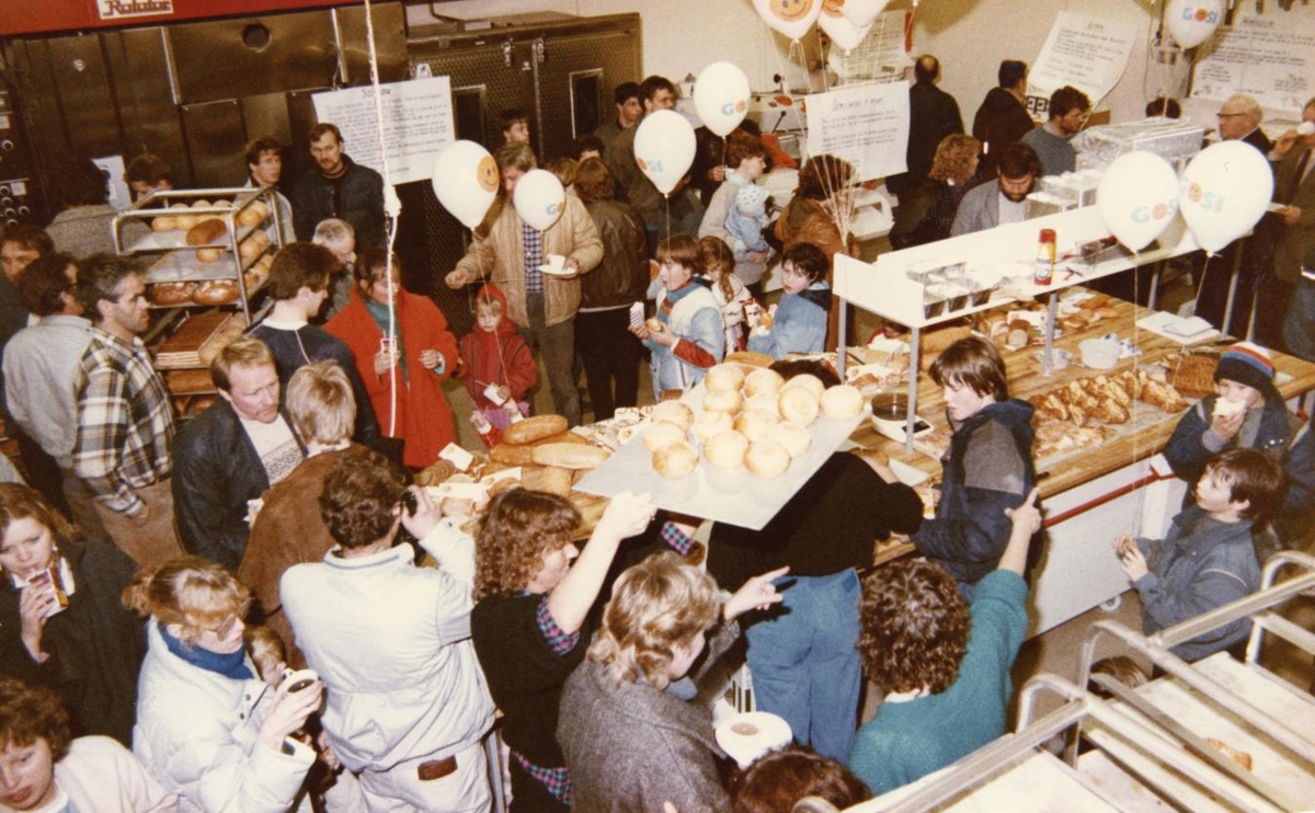 Ljósmyndir úr vígslu brauðgerðar Kaupfélags Hvammsfjarðar 2. nóvember 1985 að Vesturbraut 12a í Búðardal. Brauðgerðin var rekin af kaupfélaginu til 16. júní 1989. Bakarameistari var Kristján Skarphéðinsson.