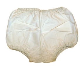 b) Undirbuxur. Stuttar buxur með kjólnum. Teygja í mittið og í opi fyrir fætur (buxnaskálmar).