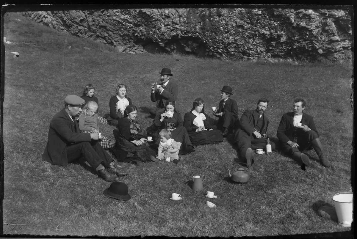 Frá Djúpavogi. Heimilisfólk Elísar Jónssonar og starfsfólk við verslun hans.