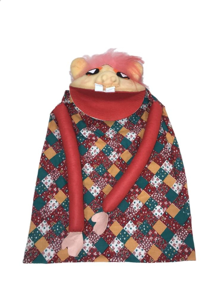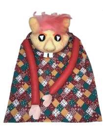 Handbrúða. Unnin úr pappadiski, svampi, bómullarefni, filti og gærubút. Brúðan vakti athygli nemenda en hún reyndist of erfið fyrir þann aldurshóp sem hún höfðaði til.