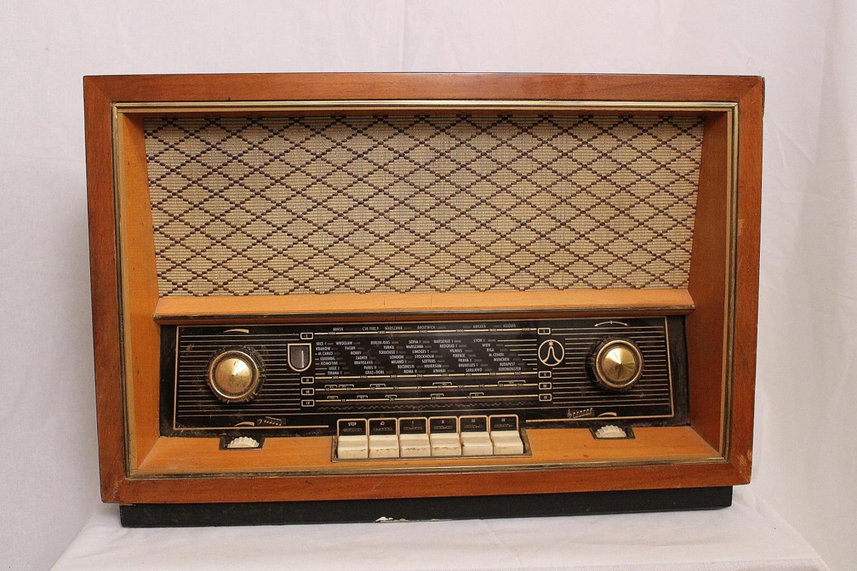Tesla útvarp frá Kaðalsstöðum, fyrir 220V rafstraum. Framleitt í Tékkóslóvakíu.
