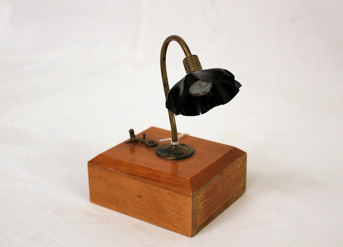 Borðlampi (fyrir rafhlöður) úr búi foreldra gefenda, Jórunnar Bachmann og Geirs G. Bachmann, Borgarnesi.
