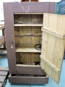 Áhaldaskápur úr eigu Kristins Guðmundssonar, Mosfelli, Mosfellssveit. Þessi skápur kom til safnsins með söðlasmíðaáhöldum Kristins, sem skráð eru nr. 2639 til 2669.