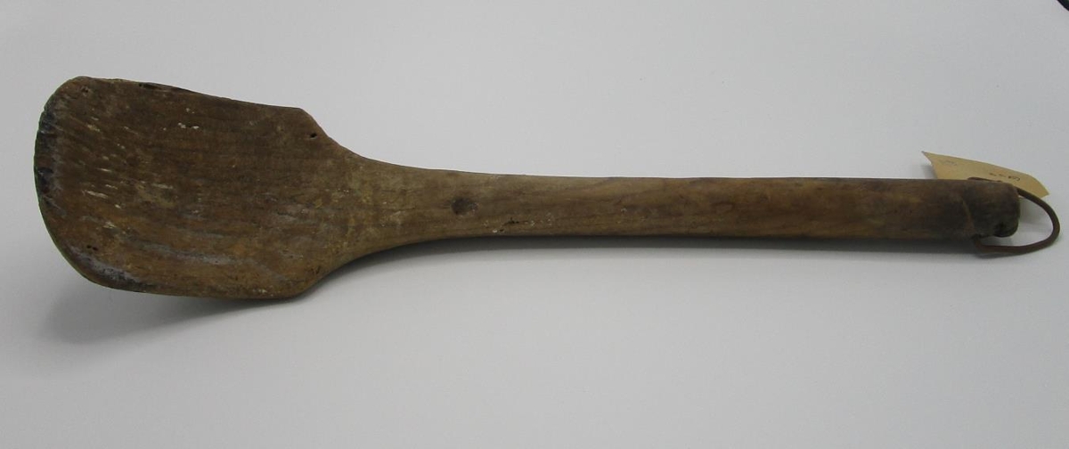 Sláturspaði. Á endanum er málmlykkja til að hengja spaðann upp