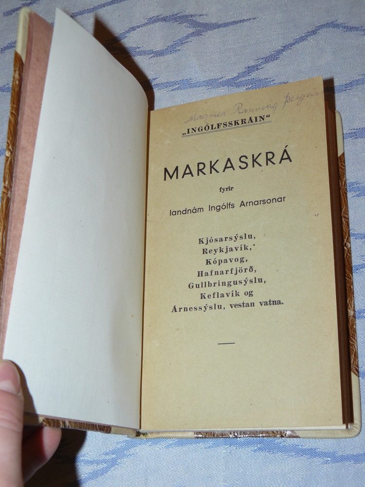 Markaskrá, Ingólfsskráin markaskrá fyrir landnám Ingólfs Arnarsonar. Gefandi: Rannveig Þorgeirsdóttir frá Lambastöðum í Garði (1926 - 2013).