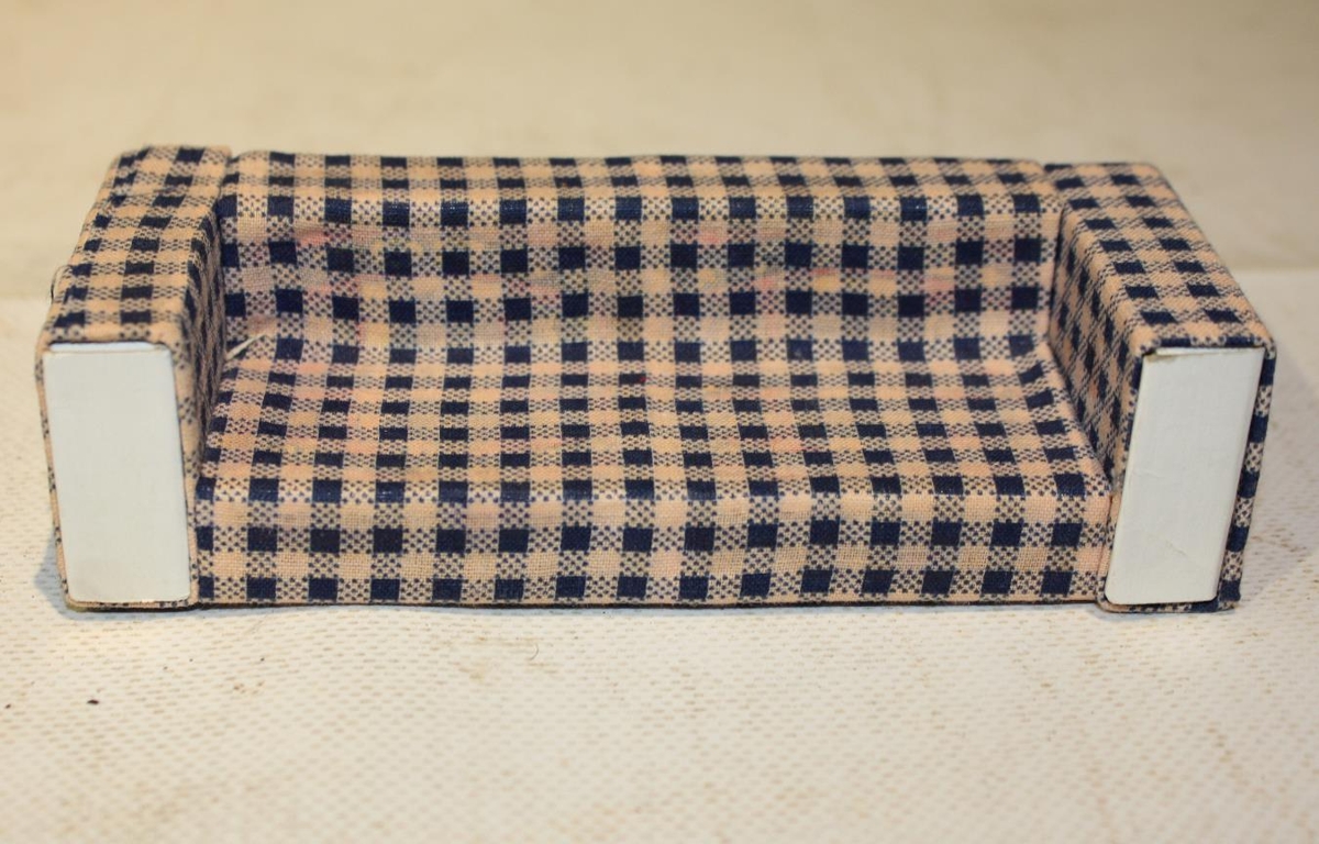 Dúkkusófi / leikfang, gerður úr eldspýtustokkum. Ekki er vitað hver bjó til. Gefandi Jónína Lilja Guðmundsdóttir (1946-)
