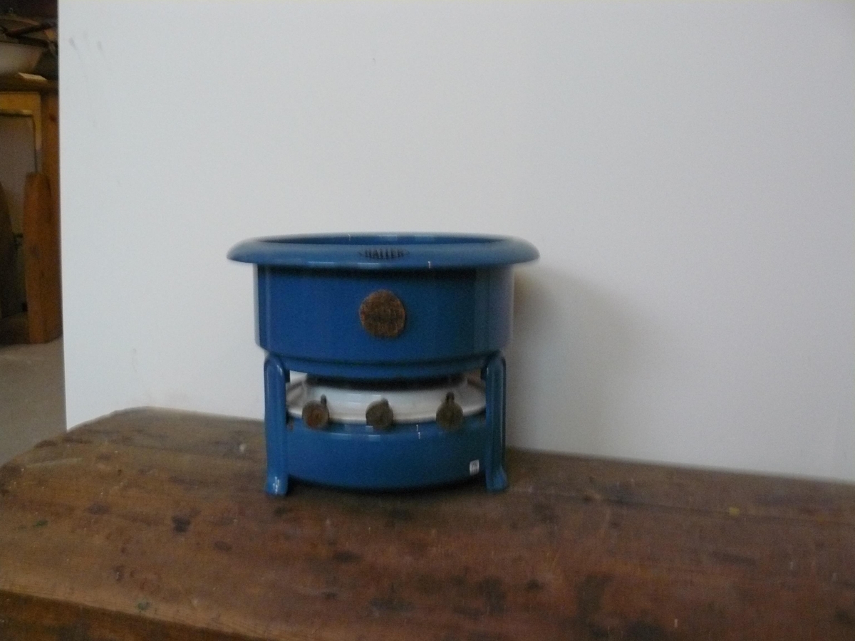 Þríkveikja blá að lit. Þessi munur kom úr dánarbúi Þorláks Benediktssonar kaupmanns og konu hans Jórunnar Ólafsdóttur frá Akurhúsum í Garði. Þorlákur rak verslun í Akurhúsum frá árinu 1921-1972. Gefandi: Ingibjörg Gísladóttir, fósturdóttir Þorláks og Jórunnar (1930 - 2022).