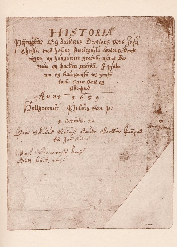 Historía Pijnunnar og Daudans Drottens vors Jesú Christi (Passíusálmar) Hallgríms Péturssonar (1614-1674). Ljósprentuð eiginhandrit. 57. prentun. Útgefið af Lithoprent árið 1946 í Reykjavík.103 bls. Gefiandi séra Jón M. Guðjónsson (1905-1994)