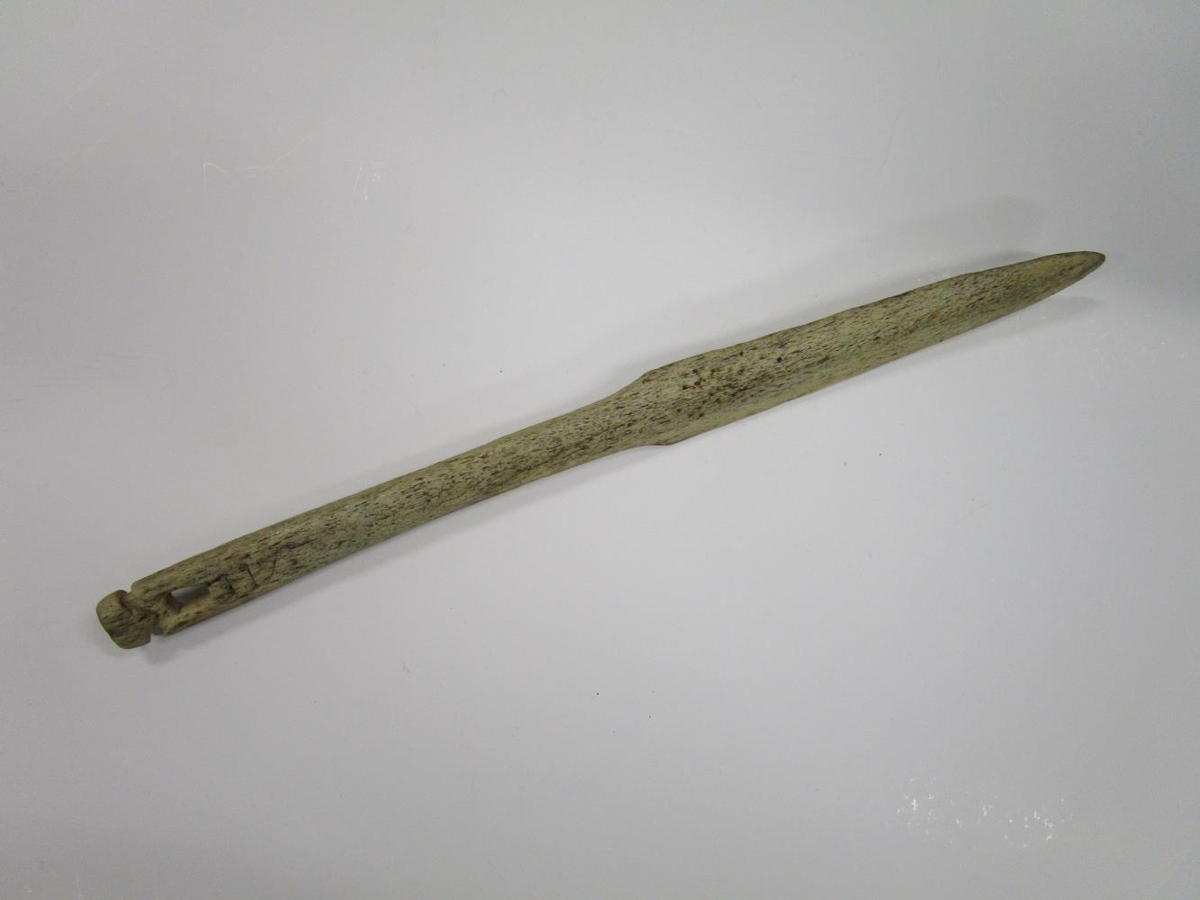 Nál úr hvalbeini notuð til að seila fisk upp á seilaról.