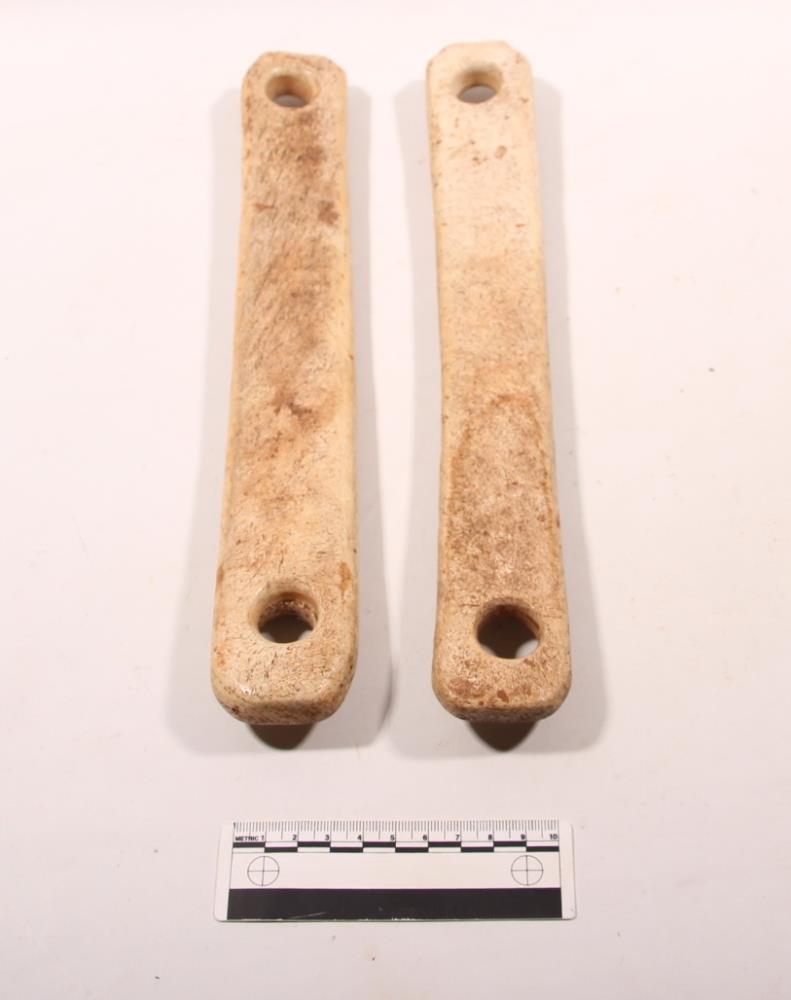 Kýrklafar úr hvalbeini. Tvö stykki, hvort á móti öðru. Kringlótt göt eru á sitthvorum enda. Stykkin eru ferhyrnd, lengd 31,6 cm og 32,2 cm. Bæði eru 4,5 cm á breidd. Þykkt er 1,6 cm og 1,8 cm. Svolítið íbjúg og snýr slétta hliðin inn en sú grófari út. Klafarnir voru bundnir saman ofan og neðan og lágu við kýrhálsinn sitthvoru megin. Band var fest í neðri samskeytin og bundið í garðaband. Klafar sem þessir voru sjaldgæfari en úr stórgripaleggjum. Að ofan voru klafarnir oft hnýttir saman með stuttri hnappheldu. Þá var festur reipisspotti neðarlega við jötustokk, hæfilega langur og miðaðist lengdin við að kýrin næði að sleikja sig, éta og drekka.