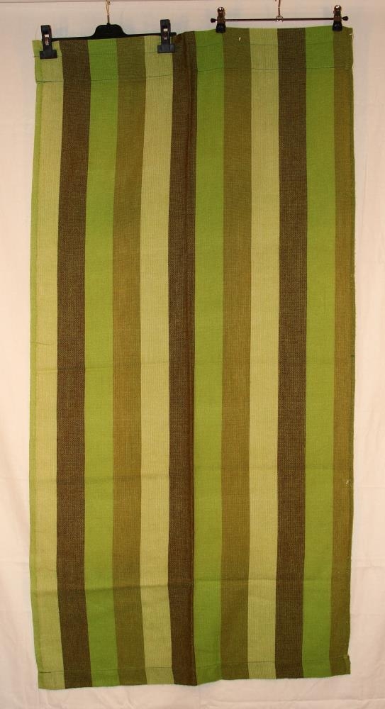 Efnið er röndótt með grænum og mosagrænum röndum.