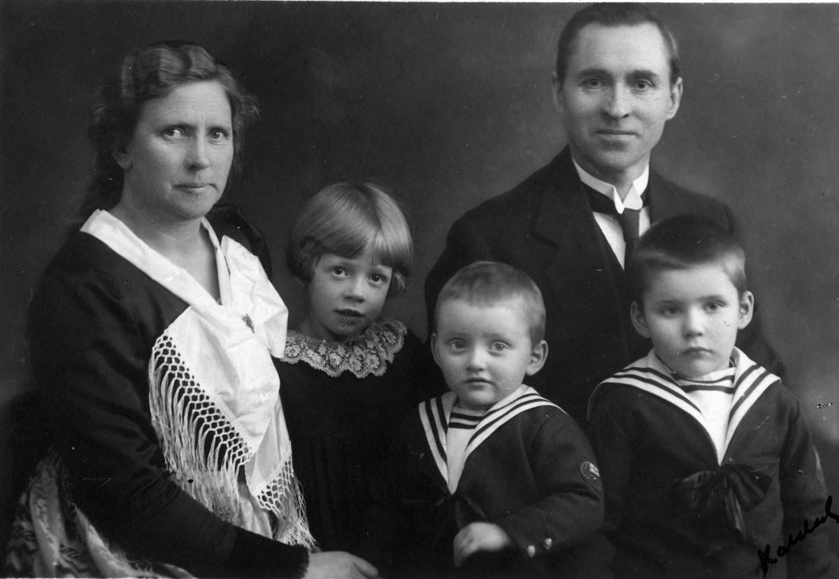 Fjölskyldumynd af Sigurði Kristinssyni, Guðlaugu Hjörleifsdóttur og þremur börnum þeirra