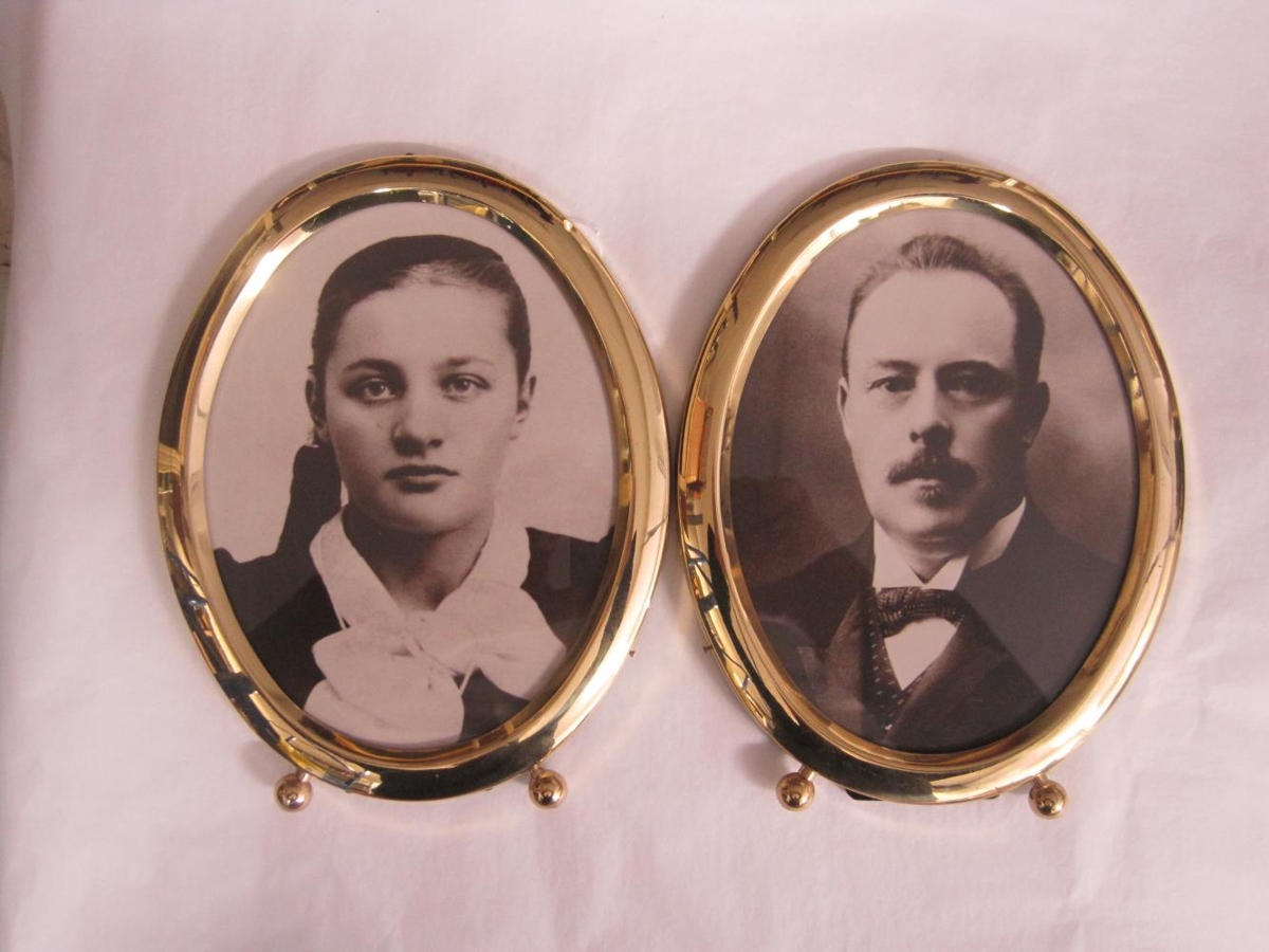 Ljósmyndir í gylltum sporöskjulöguðum römmum af þeim Páli Vídalín Bjarnasyni (1873 - 1930) og konu hans Margréti Árnadóttur(1884 - 1985). Páll var sýslumaður í Snæfellsnes- og Hnappadalssýslu árin 1912 - 1930 og sat í Stykkishólmi.