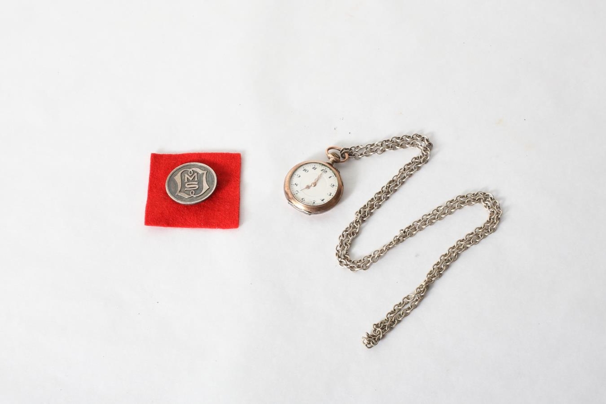 Vasaúr fyrir heilbrigðisstarfsfólk og ljósmæðramerki. Úrið er lítið og nett og á því er 33 cm löng silfurkeðja. Merkið er úr silfri á það eru grafnir stafirnir LMSI, sem standa fyrir Ljósmæðraskóli Íslands.