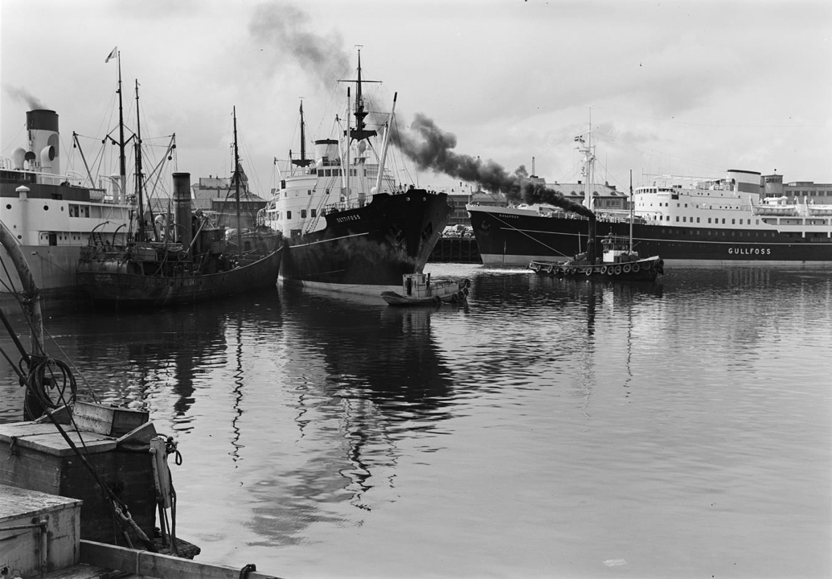 Gullfoss siglir út úr R.víkurhöfn á leið til útlanda 1950.