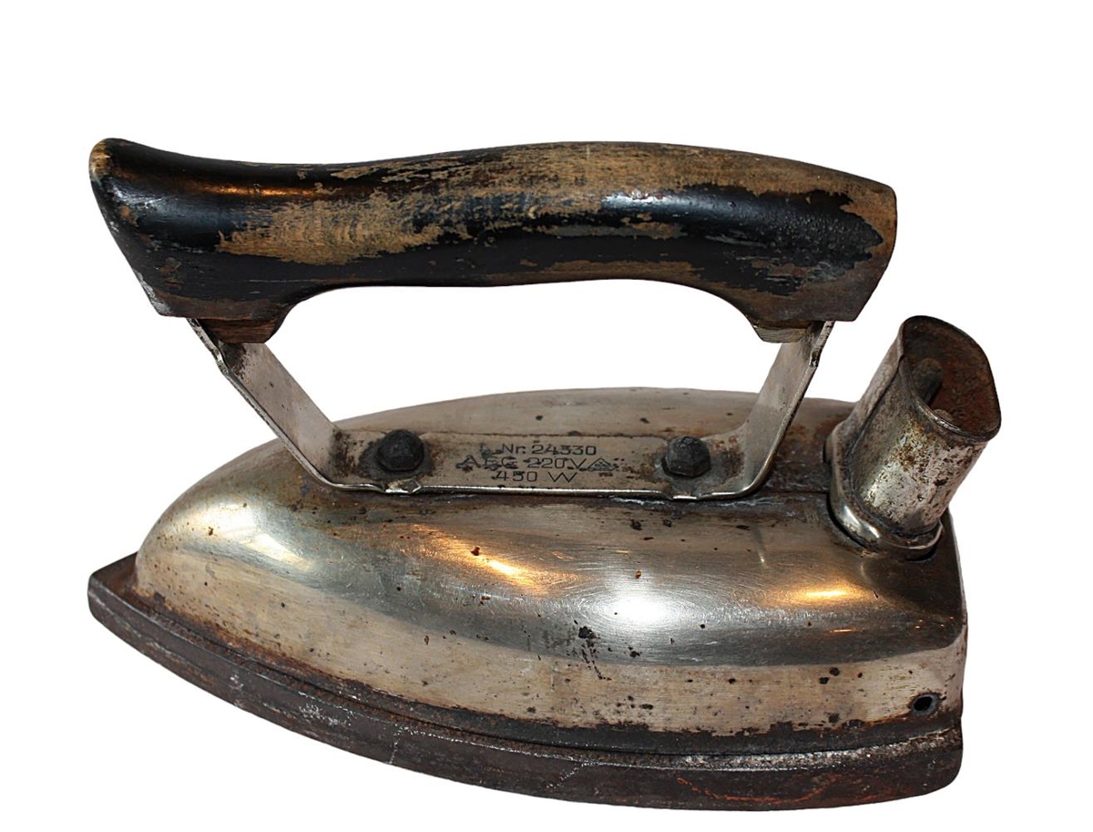 Rafmagnsstraujárn úr járni með tréklæddu handfangi. Framleiðandi AEG 220 v - 450 W nr 24330