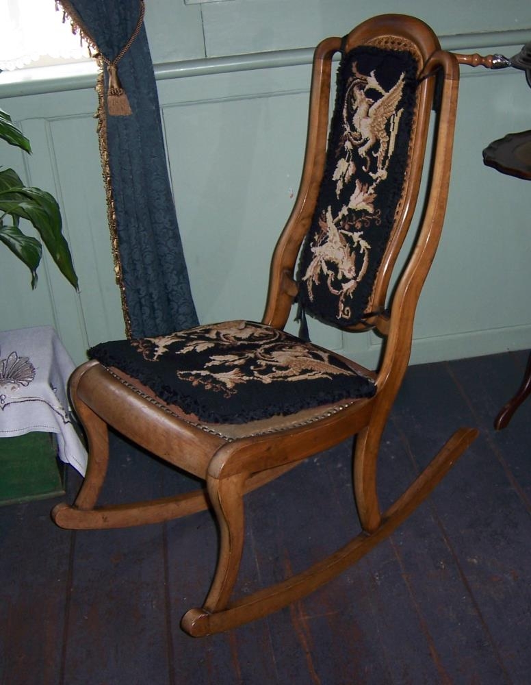Ruggustóll með útsaumuðum púðum.